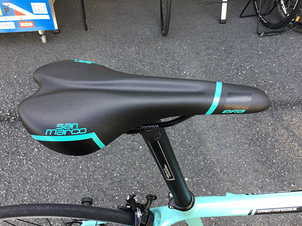 | メインコンポーネントは105。 | ツヤありのチェレステカラー | 車体カラーに合ったサンマルコ エラ サドル。 |