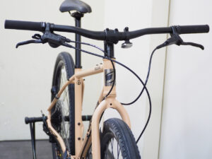 以前試乗もさせていただきましたが、そこまで荒れてなければMTBのようにシングルトラックも走れました。少しハンドリングがクイックなので、ステム長を長くすると操舵性が改善しました。