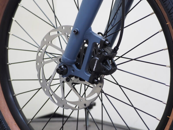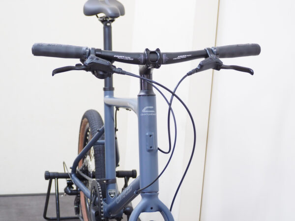 小径ですが、ヘッドチューブは長いので、楽な姿勢で乗れます。