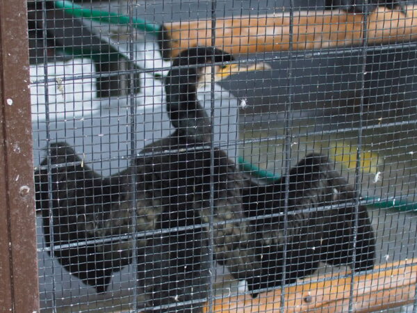 人工ふ化させた鵜と、そうじゃない鵜が別檻に。