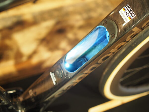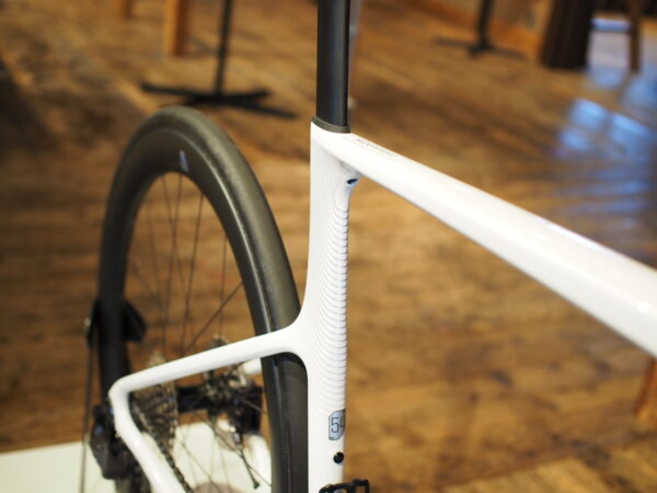 さらにダウンチューブにストレージも設けて、タイヤクリアランスは700x42mmまでいけるようになったモデル。