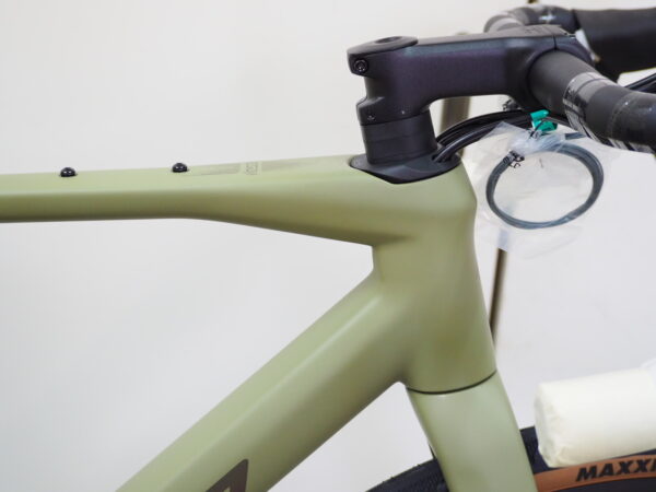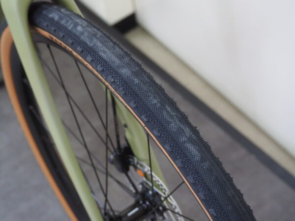 タイヤはMAX40mmまでなので、チェーンステーの膨らむは大きくないので、52/36Tなどの大きいギアのクランクも使えるのが特徴です。