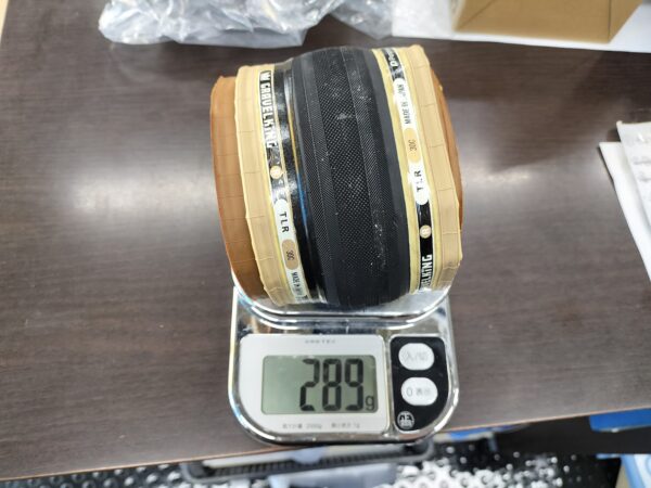 ちなみに30mm TLRでこの軽さ。Vittoria CORSA PROより軽いです。
