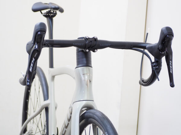 かなりエアロな形状のFシリーズの形状で、カーボンの種類はX3だとかと同じ東レのT600カーボンを採用しているので、単独である程度スピードを出してのロングライドをする人なんかに特におススメしたいバイクです。