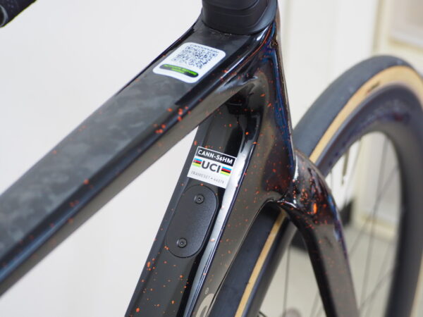LAB71が最上位グレードでプロチームに供給されている事になっているのですが、重量がUCIルールより軽くなってしまう為、実際はLAB71とペイントされたHi-Modのフレームがレースを走っているとの事。