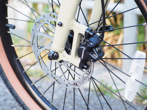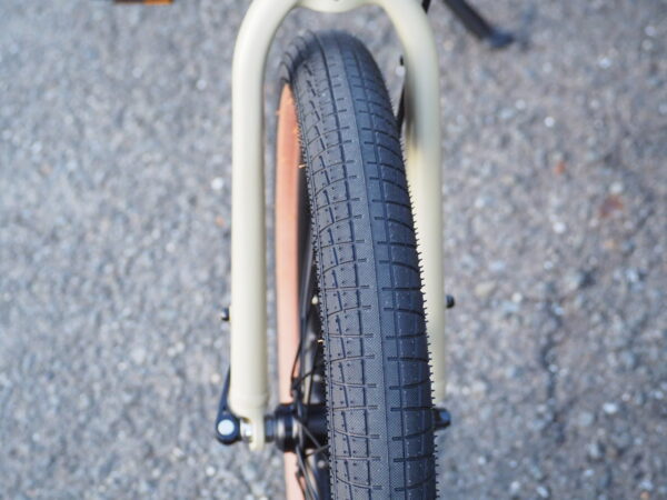 どうしても20インチの小径ホイールは走破性が悪く、また乗り心地もあまり良くない傾向にありますが、こうしてタイヤの幅を大きくしてエアボリュームを稼ぐ事で乗り心地を良くできるのです。
