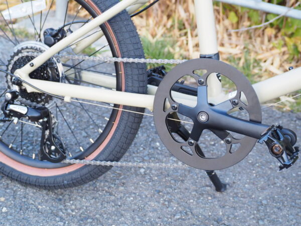 チェーンリングは裾巻き込み防止のガードが標準装備されます。