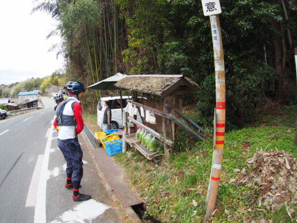 比較的高確率で、ライド中に野菜の直売所に寄って、野菜を買います。