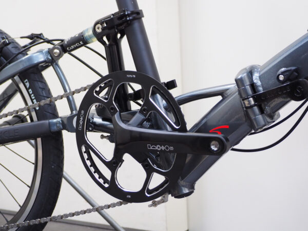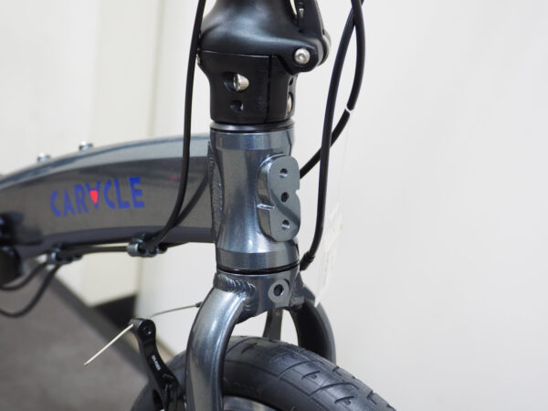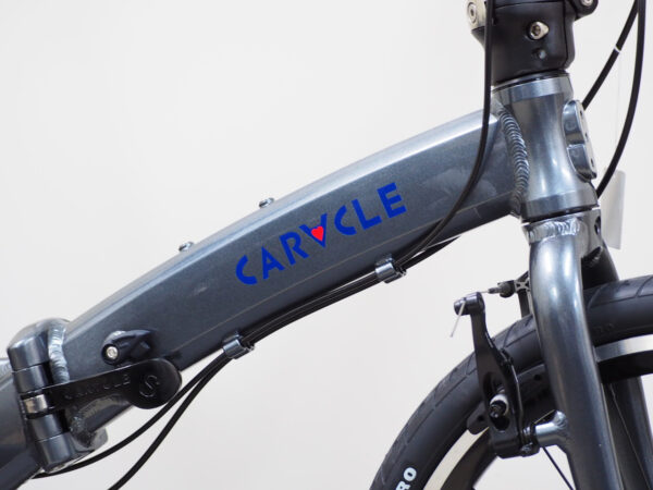 標準的な折り畳み自転車が2つ折りなのに対し、カラクルは三つ折りなので小さくなります。