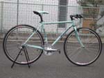 | 人気が非常に高いビアンキのツーリングバイク「LUPO」、このバイクを「フラットハンドルに改造して欲しい」というお客さまからのご要望が非常に多いのです。そこで当店オリジナルの「LUPO FLAT(バイシクルドットコムオリジナル仕様車)」を作りました。ビアンキのクロスバイクのライナップでは今までこういう細めのスチールフレームのクロスバイクがなかったので以外と新鮮です。ハンドルセンタークランプ径を25.4mmとし少し長めのステムを付けています。メインフレーム、シートステイ、ハンドルに至るまで全てのパイプが細めにしてあるせいか、とてもかっこ良いです。またノーマル仕様のドロップハンドルのルポに比べると上半身が起きやすいポジションになりますので女性や、ツーリング志向ではない街乗りで使用される人なんかはこちらのフラットハンドルのほうが使いやすいかもしれません。フラットハンドルにすると実はVブレーキも使用可能になりますがドロップハンドル仕様ではききがイマイチのノーマルカンチブレーキでも十分な制動力が得られることもありがたいです。クロモリフレーム独特のしなやかな乗り味が売りのクロスバイク版「LUPO FLAT」、ハンドルやステム、タイヤやペダル等をロゴと同じ「ホワイト仕様」にするのも「ある」とおもいますぅ。ボディーはチェレステカラー仕様ももちろん作れます。 |