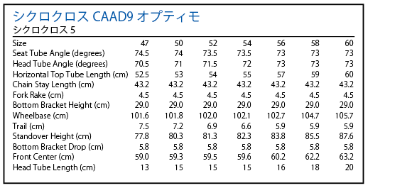 2009年 Cannondale CROSS/TOURING SIZE&GEOMETORY