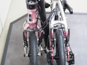 K3と同様に工具無で小さく折りたためるものの、タイヤの外周が大きくて走破性や安定感もあります。また、変速も9段ありますので、上り坂も楽に走れます。