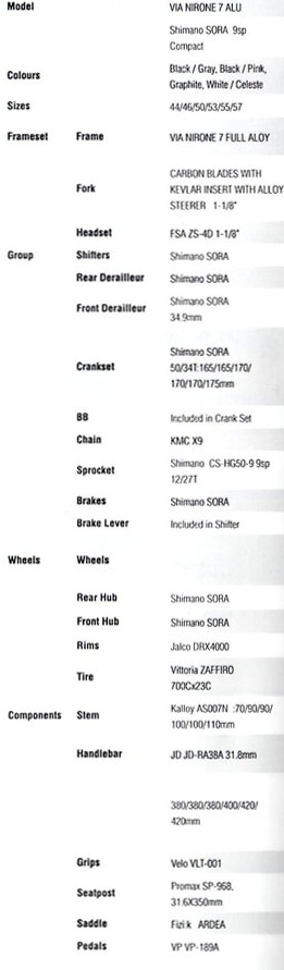 ViaNirone7 ALU(ヴィアニローネ7 アルミ)各部のアップ実車写真