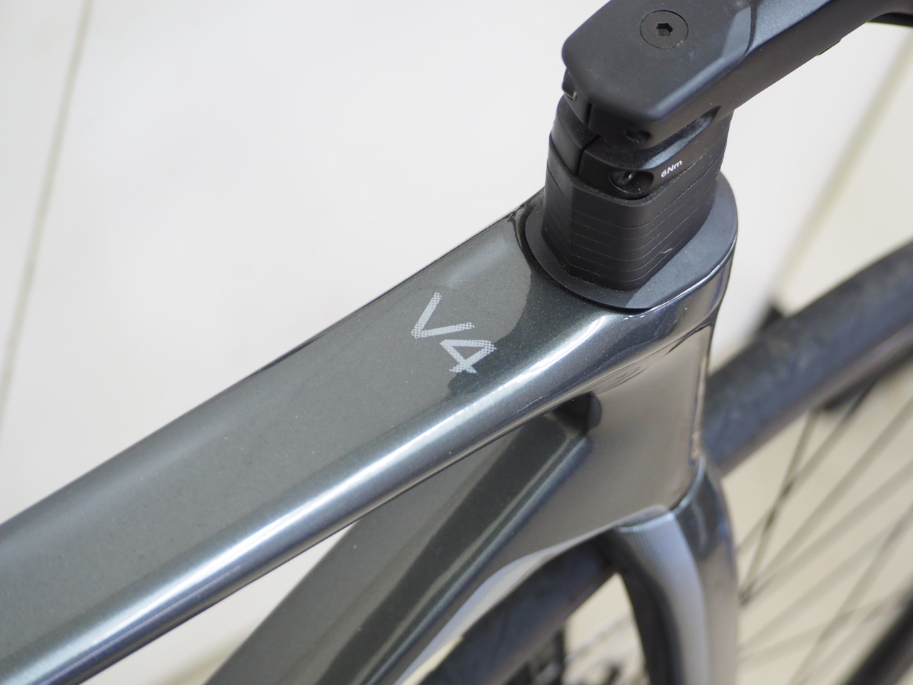 前作のV3が、プロ選手が使うV3-RSと同じ形状だったのと同じように、V4-RSのフィードバックを元に作ったミドルグレードのレースバイクがこのV4です!