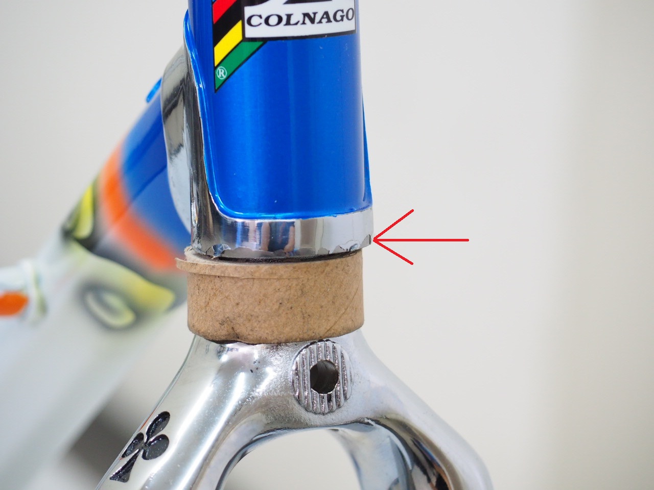 ・ヘッドチューブ下側のシルバーの部分が割と大きく荒れてます
