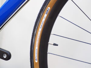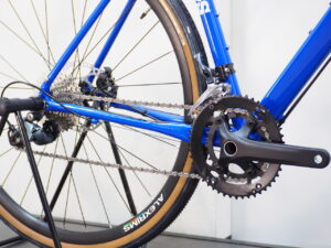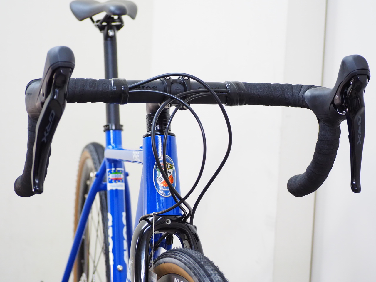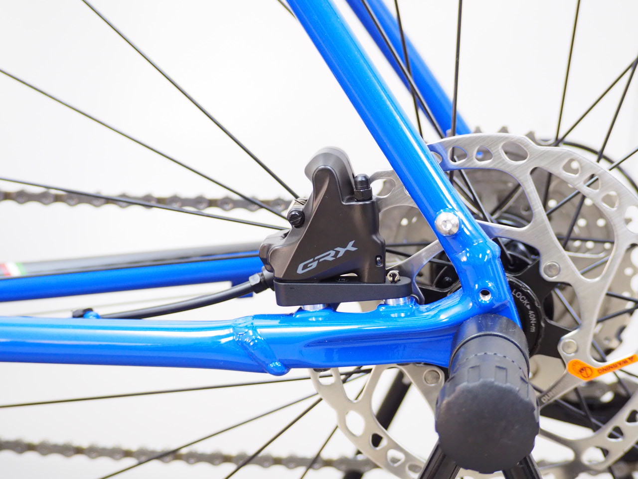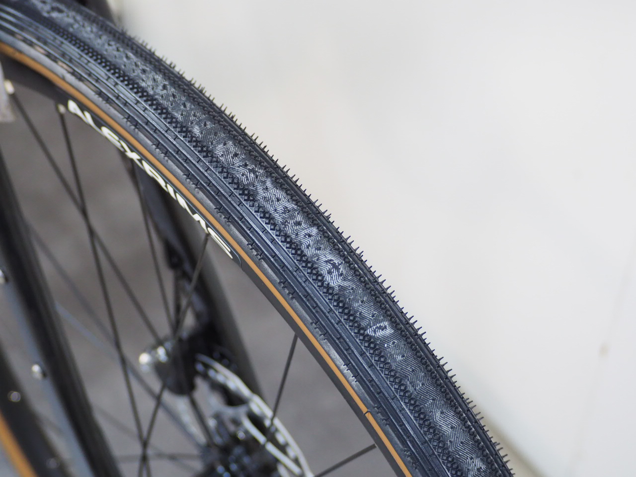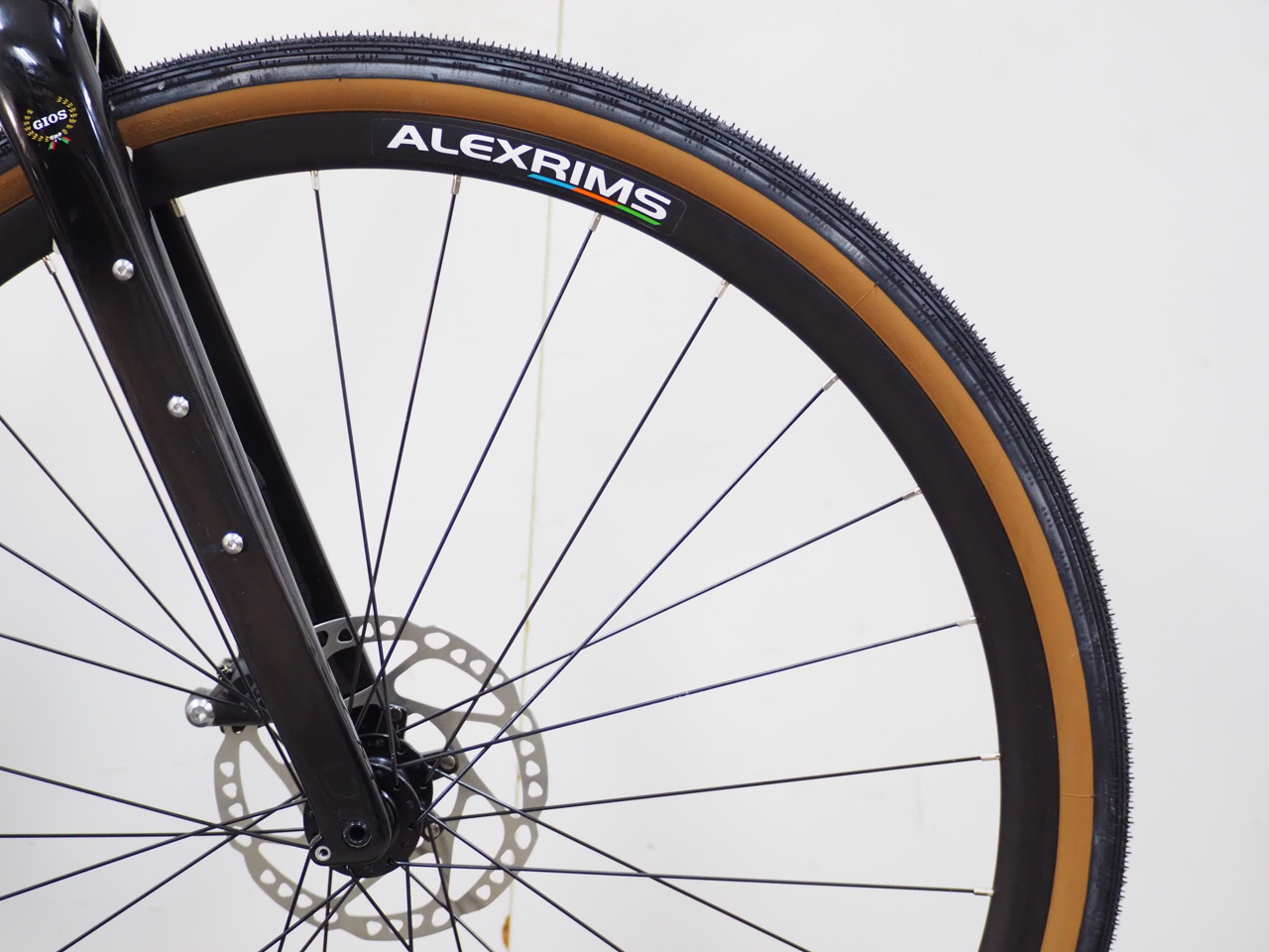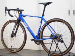 軽量ハイドロフォーミングアルミフレームとカーボンフォークの組み合わせで軽快な走り。極太38Cタイヤはアスファルトはもちろんダート道でもバツグンの安定性と乗り心地。フロントフォーク、シートステーにアイレットを設け、荷物を積むなどの拡張性も高いバイクです。