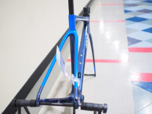 素材であるカーボンの特性を最大限に引き出すため、レイアップとフレーム形状を徹底的に追求。32Cタイヤ対応と十分なクリアランス設計により、空気の流れを整え、優れたエアロ性能を実現しています。