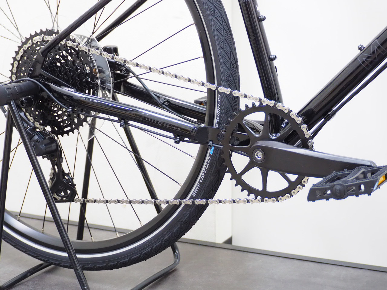 オフロードでも優れたグリップ力を発揮する SCHWALBE タイヤや、タッチの軽い油圧ブレーキ、登りも楽に対応できる 10speed (11T-51T)スプロケットを標準装備。ツーリングや里山ライドだけでなくストリートも楽しめる、シンプルなデザインに高いパフォーマンス性を備えた1台。