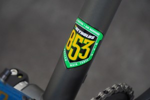 悪路での安定感を高める435mmのチェーンステイ、低く設定したBBハイト、緩やかなヘッドチューブ角を特徴とする