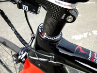 ヘッドチューブは上下異径で剛性を確保しつつも、横幅を絞りエアロ効果を追求しています。 |