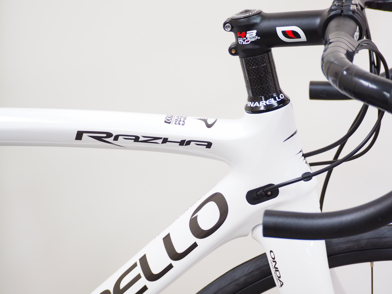 かつてピナレロと言えばウェーブした形状のONDAフォークでしたが、今はフレームの形状がエアロになるにつれ、少しずつ形が変わってきました。しかし、RAZHAだけはずっと同じ形でバイクを作り続けています。DISC仕様になったりと、ちょっとしたマイナーチェンジはあるものの、選ばれ続けるバイクです。