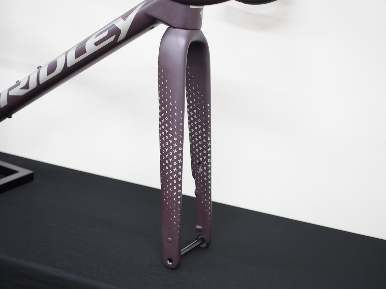 2023 年に発⾜したグラベル種⽬における初のプロチームであるClassified Ridley Factory Team からのフォードバックを受けて開発されたGrifn RS は、重量と剛性を考慮して弾性率の異なる60T/40T HM UD カーボンを使⽤。最適化されたカーボンレイアップによりGrifn と⽐較して111g(S サイズ) の軽量化を実現。さらにバイクをより速くするために空気⼒学⾯でも最適化されました。